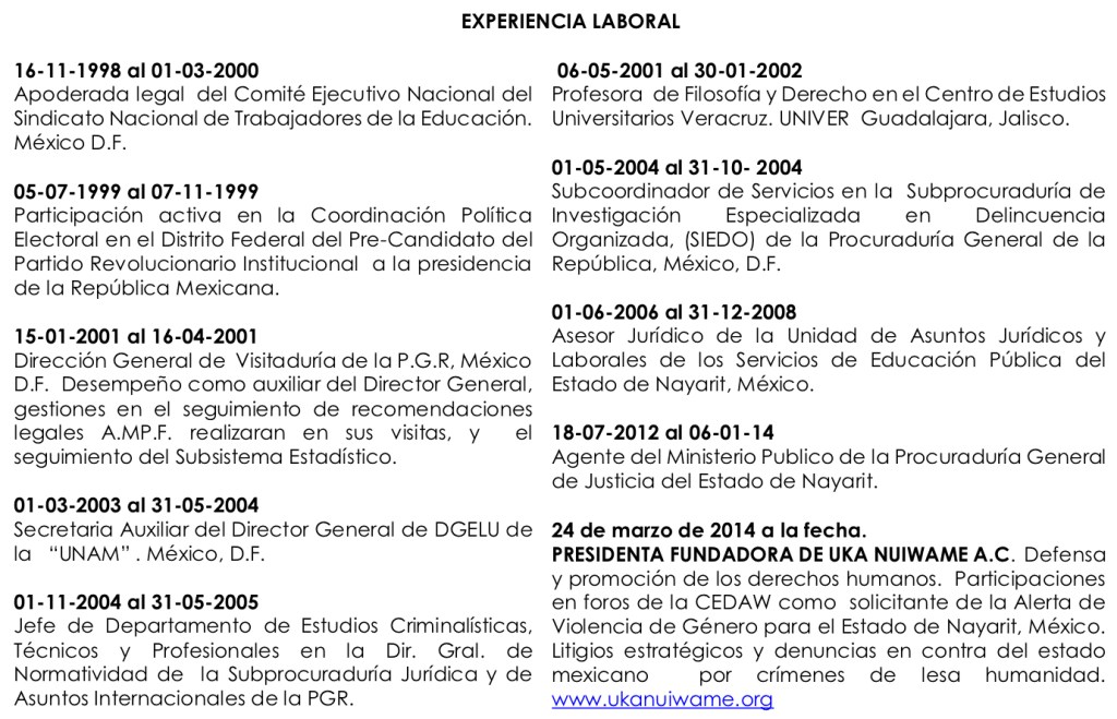 Es una luchadora social innata, con integridad moral, social, ética profesional, nada convencional, se le conoce por carecer de diplomacia y tener muchos huevos, convirtiéndose poco a poco en una figura pública como una Activista y defensora de los derechos humanos. A pesar de su preparación jurídica internacional nunca se le dio ningún nombramiento en Nayarit por su carácter de no aceptar compromisos con políticos. Personalidad intachable moralmente y profesionalmente creo que es la persona ideal para ocupar el puesto de Gobernadora de Nayarit por el 2021.