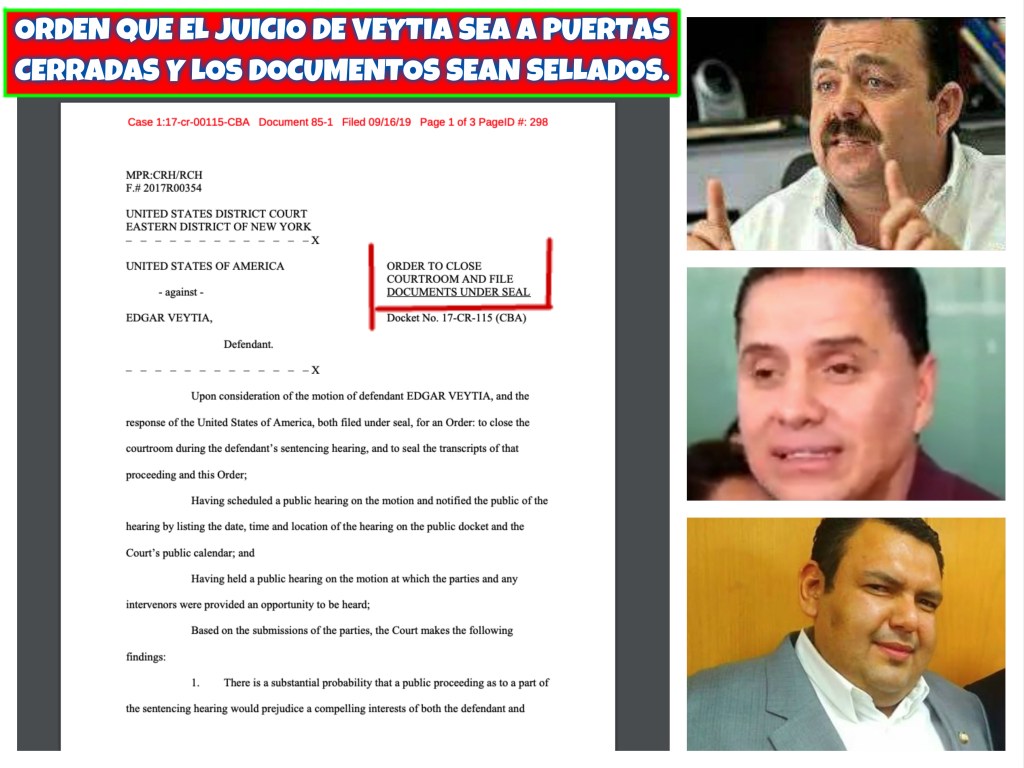Después que la defensa de Veytia, y el Gobierno, solicitaron al Juez del caso Veytia que el juicio fuera a puertas cerradas y los documentos sellados, el día 16/09/2019 el juez aprobó la solicitud de las partes. El que los documentos estén sellados significa que es el material es privilegiado