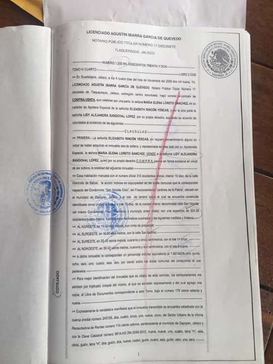 Escritura de la casa de la niña en Guadalajara 4 miloncitos de pesos.