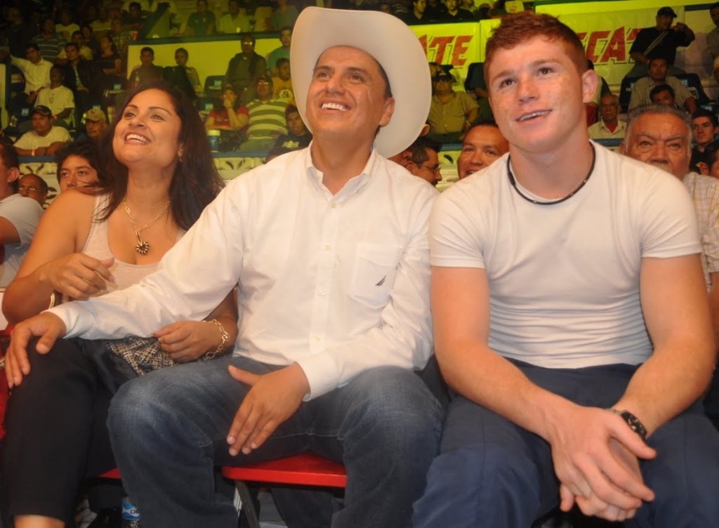 Roberto Sandoval Castañeda, his wife Lily Lopez y Santos Saul Alvarez Barragan alias «El Canelo» world boxing champion.
