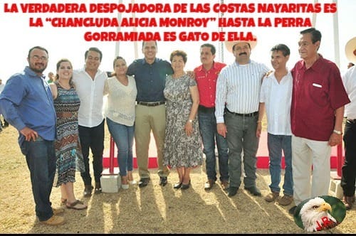 Compostela el segundo municipio de Nayarit completamente bajo el control de las mafias que a pesar de haber dejado el poder siguen de las sombras manejando el destino del municipio. Alicia Monroy priísta desde siempre es la principal representante de la mafia que controla todo. Los nexos de la mafia monraysta con la criminalidad organizada es notoria con la apoyo del fiscal petronilo mantienen un estricto control del territorio, no hay permiso que no pase por sus manos. El nexo con gloria Núñez y la presidenta actual Romina Chang es notorio y la el Alicia Monroy es la que maneja la concesión de licencias al desarrollo Mandarína. Amiga personal de Juan Bremen y de Ricardo Santacruz ella tiene varias propiedades a su nombre en el desarrollo Mandarina. Sin contar el control que tiene arriba de los comisarios ejidales que maneja a su antojo.
