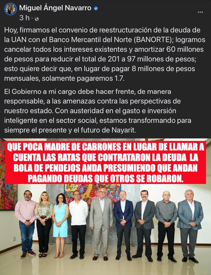 El gobernador ha sido sorprendido mintiendo en varias ocasiones. En esta ocasión, prometió haber pagado la deuda de la Universidad Autónoma de Nayarit, cuando en realidad aún le deben 6 mil millones de pesos. Es aún más decepcionante que el gobernador prometió castigar a los responsables de la corrupción en los fondos de la universidad, pero no ha tomado ninguna medida al respecto.