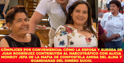 Además de su esposa y suegra, Juan Rodríguez también cuenta con el apoyo de otras figuras influyentes en la región como Alicia Monroy, alias «La Chancluda», líder de la mafia en Compostela y Gloria Ñúñez, ex presidentas municipales de dicha localidad. Además Monroy es la que guarda muchos millones en sus casas de seguridad Juntos forman un poderoso trío que domina gran parte de las actividades ilegales y corrupción en la costa de Nayarit. Esta alianza demuestra cómo la corrupción se extiende a diferentes niveles y es respaldada por diferentes personas. Como líder de una red criminal, Juan Rodríguez ha sabido rodearse de figuras clave que le aseguren el éxito de sus operaciones ilegales.