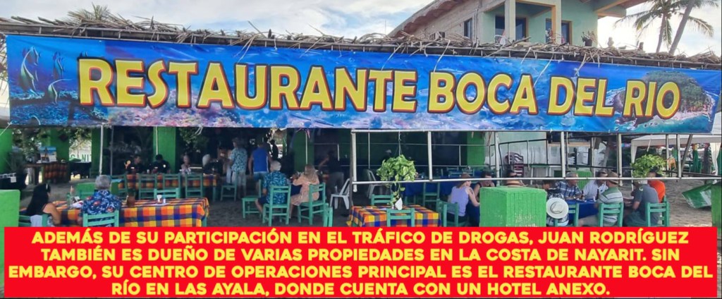 El restaurante Boca del Río, situado en Las Ayala y administrado por los hijos y la esposa de Juan Rodríguez, es un foco de actividades ilícitas en la región. Según diversas denuncias, este establecimiento opera como el centro de mando de la red de narcotráfico liderada por la familia Rodríguez. Reportes apuntan a que en este lugar se llevan a cabo encuentros entre los implicados y algunas autoridades, donde se facilitan pagos de sobornos para garantizar la continuidad de las operaciones ilegales. Ante este panorama, se recomienda extrema precaución al considerar visitar este restaurante, ya que existe el riesgo de ser víctima de posibles enfrentamientos entre cárteles contrarios, lo que podría poner en peligro a quienes se encuentren en sus alrededores.