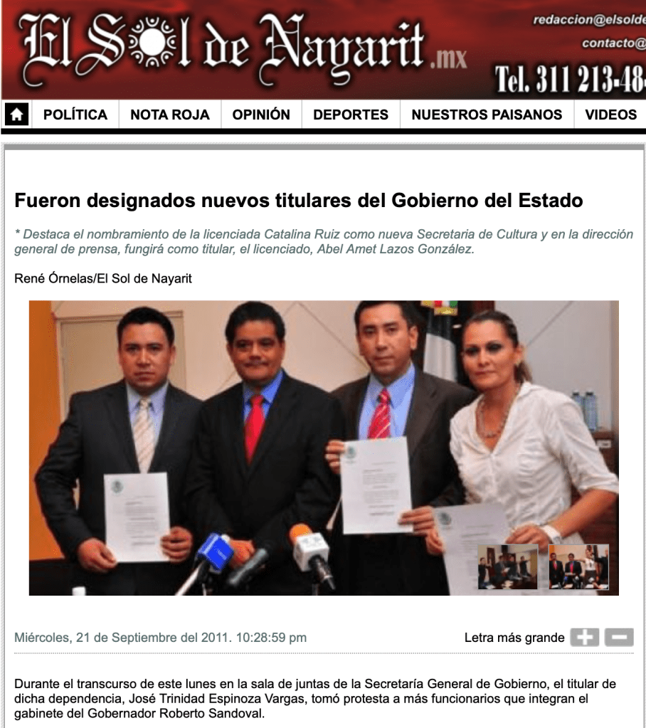 En septiembre de 2021, Abel Amet Lazos fue designado como director general de Prensa del gobierno de Nayarit, gracias a la influencia de José Espinosa, alias Pepe Atole, quien lo recomendó directamente con el gobernador. Sin embargo, su paso por el cargo duró apenas un mes y medio, cuando salió a la luz que se quedaba con dinero destinado a otros periodistas, en un claro caso de mano ancha y corrupción. Tras su salida, fue sustituido por Alberto Martínez, alias El Tico, un personaje históricamente ligado al PRI y con una larga trayectoria de prácticas corruptas. Este relevo demostró que, en Nayarit, la corrupción no cambia de manos, solo de nombres.