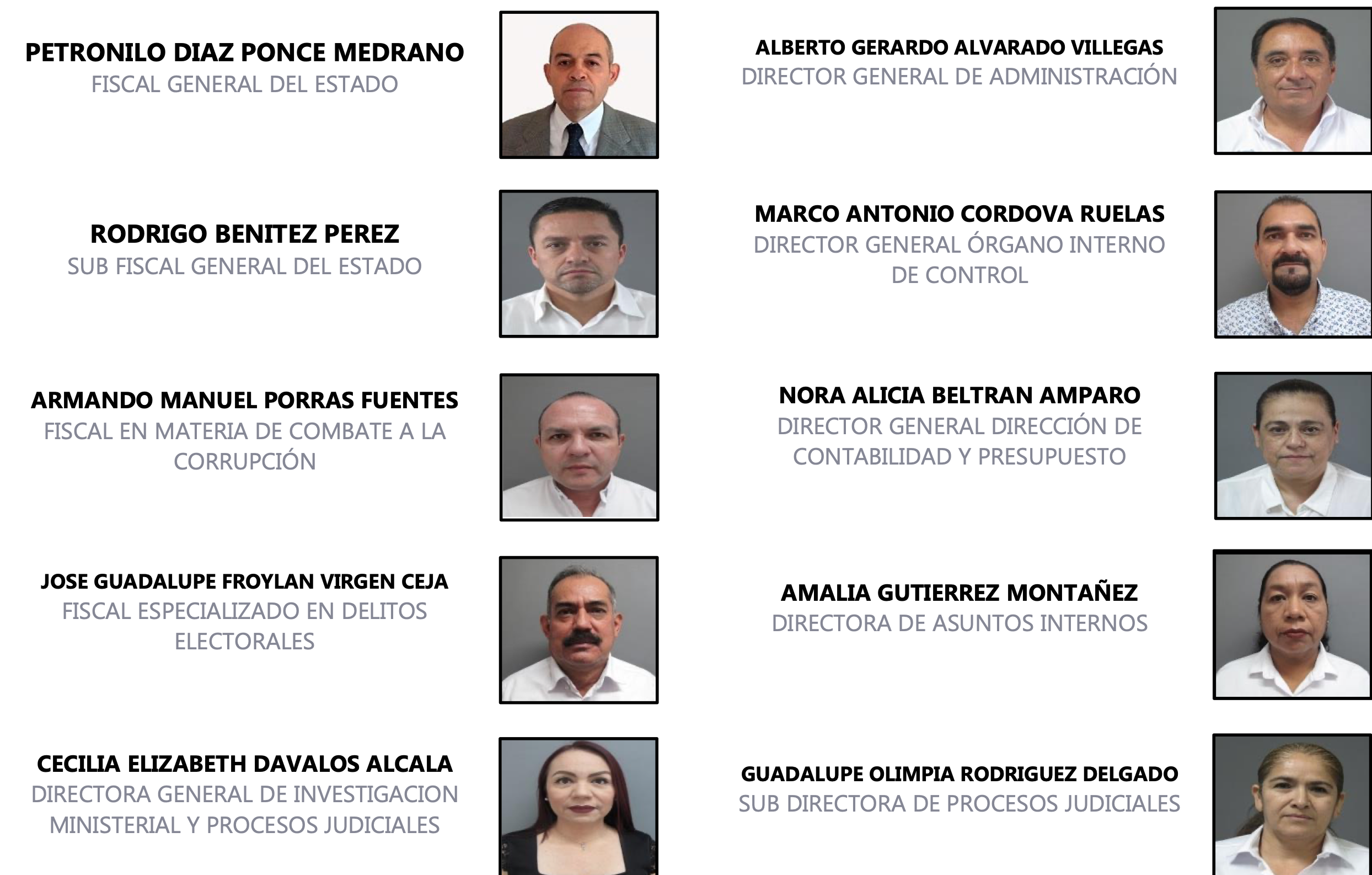 - Nombres y cargos de ministerios públicos que sirven como enlaces con cárteles.