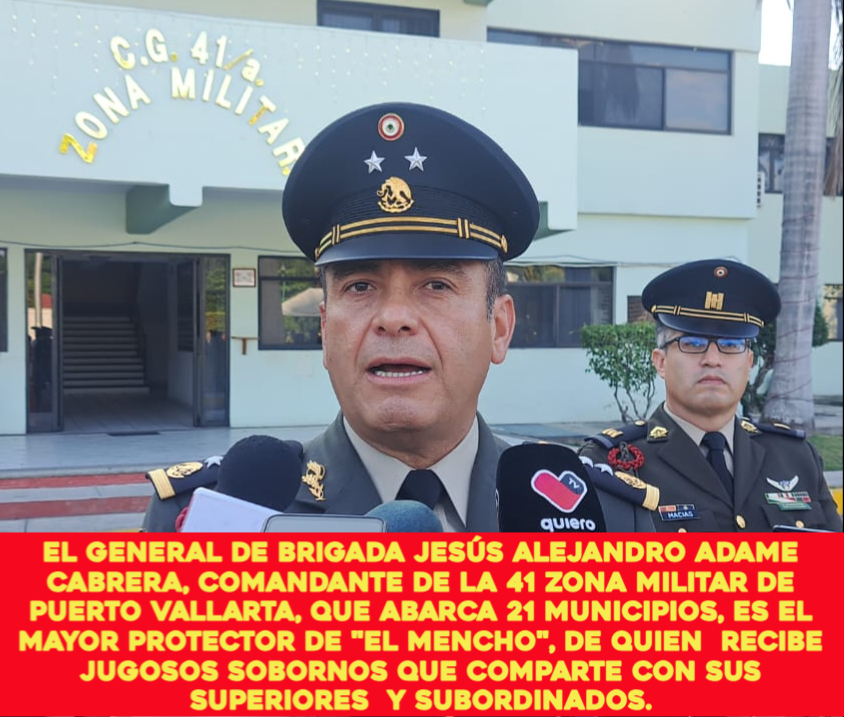 This article examines how this spiral of corruption is led, among others, by Brigadier General Jesús Alejandro Adame Cabrera, commander of the 41st Military Zone in Puerto Vallarta, who acts as a protector and enabler of El Mencho’s operations.