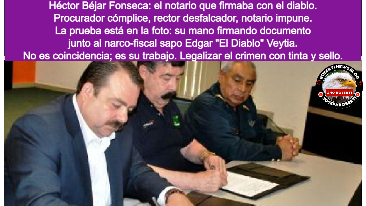 Héctor Béjar Fonseca: el notario oficial del crimen organizado y la corrupción gubernamental. Después de su etapa como Procurador, lejos de retirarse, Héctor Béjar Fonseca consolidó su rol como el fedatario de confianza del crimen de alto nivel en Nayarit. Su actividad notarial encontró su cenit durante el sexenio de Roberto Sandoval y la era de Edgar “El Diablo” Veytia. … Continuar leyendo Héctor Béjar Fonseca: el notario del narco-estado de Veytia en Nayarit. Su firma, el aval de la traición.